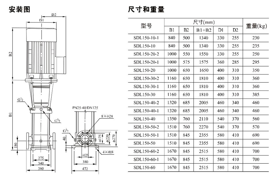 南元SDL150/SDLT150立式多級離心泵有不同的泵規(guī)格和不同級數,以滿足所需的流量和壓力。
