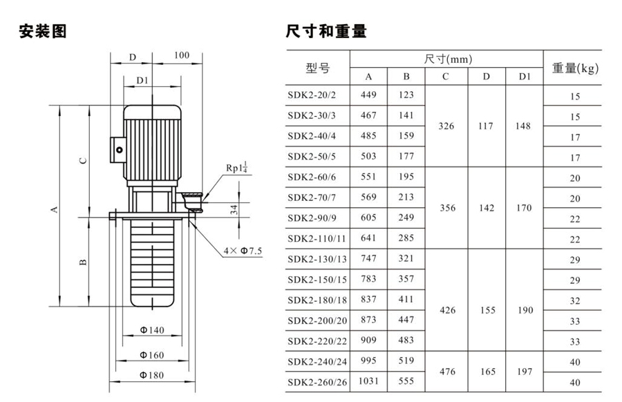 SDK2/SDKT2為配用標(biāo)準(zhǔn)電機(jī)的非自吸立式多級離心泵,電機(jī)軸和泵軸用聯(lián)軸器直接聯(lián)接的結(jié)構(gòu)。為滿足水槽或容器的安裝深度,可安裝空套的腔體來改變泵本身的侵入深度。
