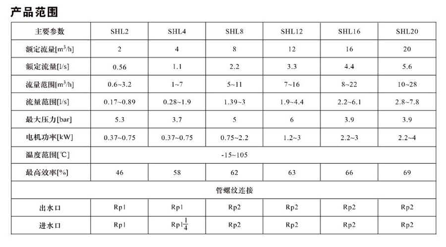 SHL/SHF/SHFT4為臥式多級非自吸多級離心泵,配加長軸電機(jī)。緊湊式結(jié)構(gòu)使泵尺寸很小,軸向入口或徑向出口。